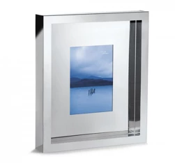 High-polished stainless steel picture frame, stands on a side table or as a real gem on the wall. It is distinctive and renders depth to each photo.