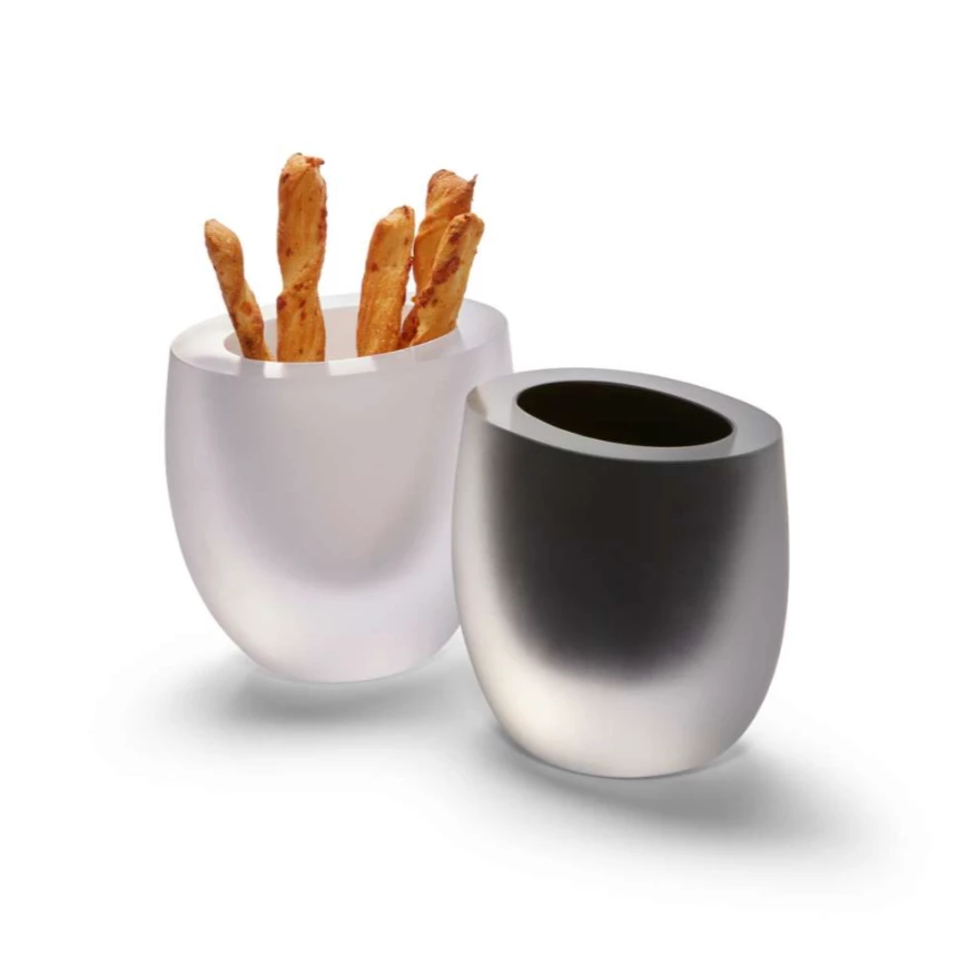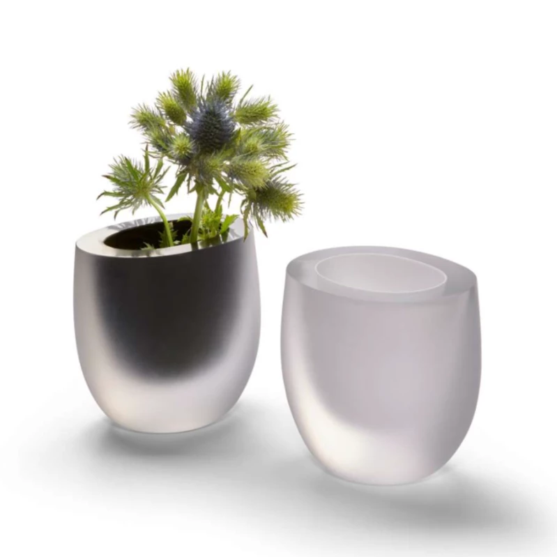 These small glass art vases are very large on style. With overlay glass and a frosted surface that is perfectly hand-ground & polished, they are great for use as a vase or as a container for snacks.