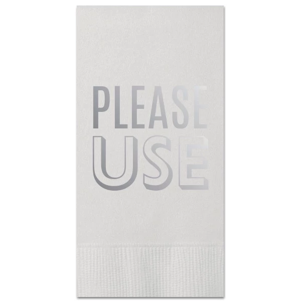 Current Home Exclusive! Everyone loves our signature guest hand towels with PLEASE USE in silver foil. Works well with our acrylic guest towel holder.