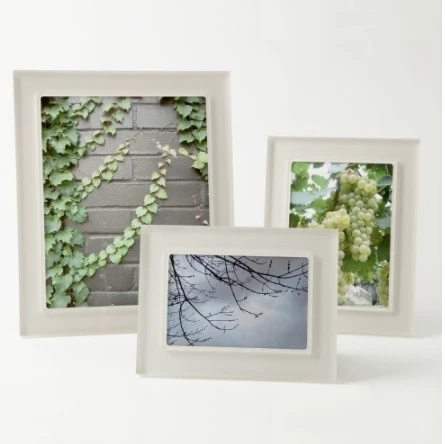 This is our most popular selling frame with a very clean modern edge with back painted acrylic edge, allowing the focus to be on your beautiful photo. Museum quality backing and easel for tabletop display.