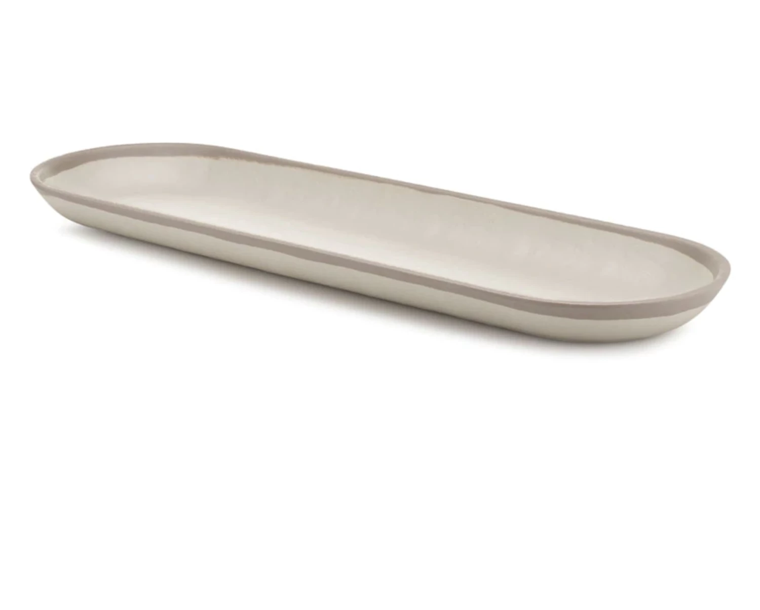 Our Potter stone gray platter has a beautiful texture that anyone would mistake for artisanal pottery. Add the dip bowl to make an excellent serving duo