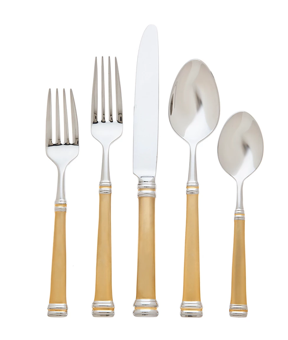 - 5 piece set – Dinner Fork, Salad Fork, Tablespoon, Teaspoon, Dinner Knife