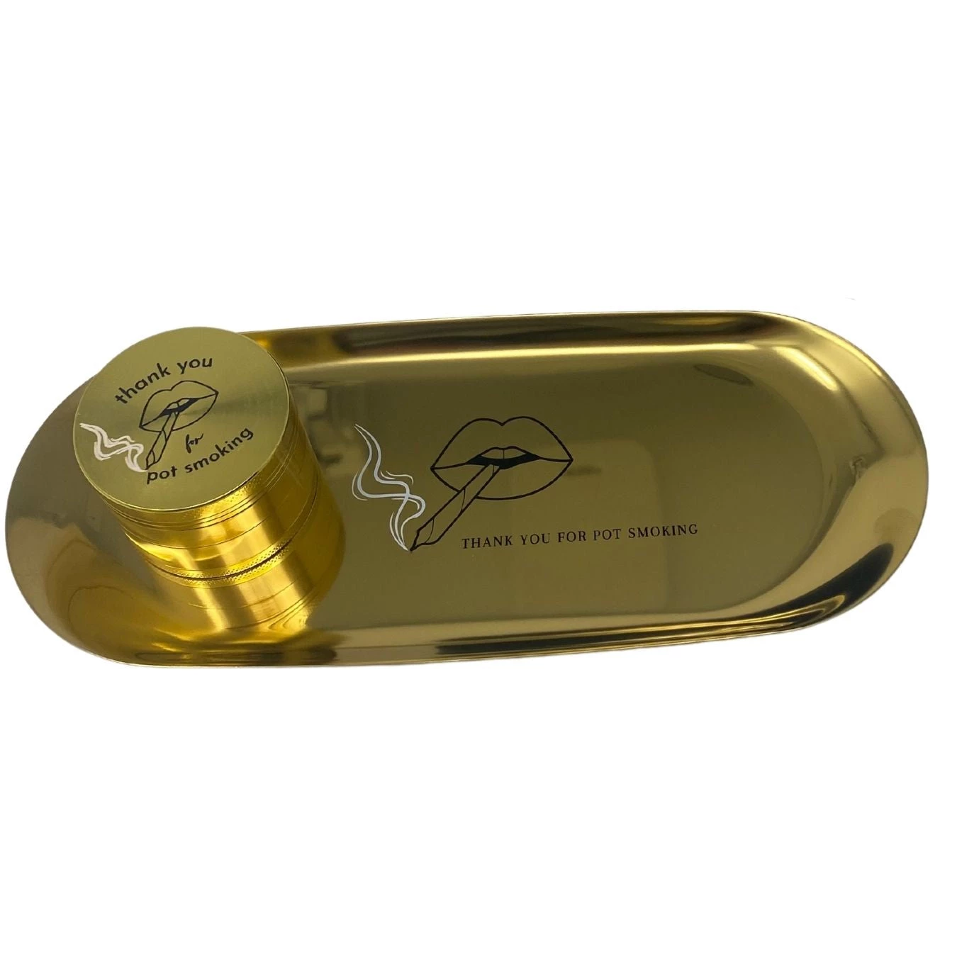 We love word play almost as much as we love cannabis. This sexy and functional rolling tray reads Thank You For Pot Smoking and features a super sexy lips and joint graphic. Pair it with the matching grinder for a great gift!