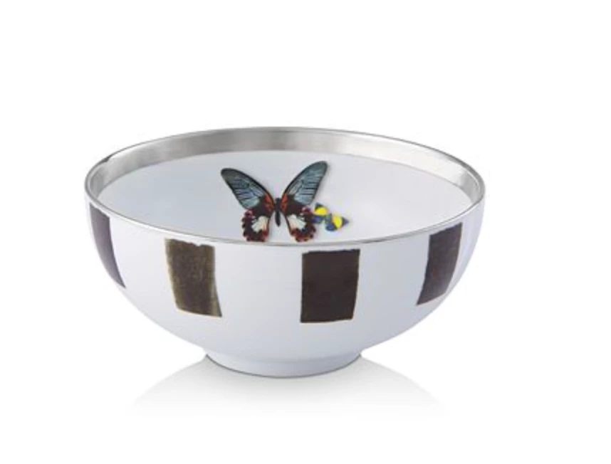 Consider paring the Sol Y Sombra with Vista Alegre’s Butterfly Parade for an eclectic, modern mix that pairs graphic detailing with an air of kinetic whimsy.