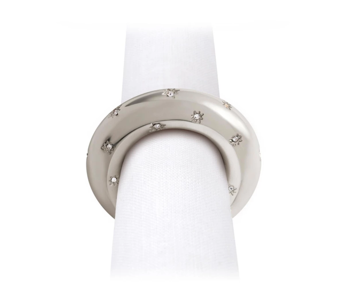 Illuminate your table with shimmering accents from the Stars collection. Combining classical elegance with whimsy, L’Objet Napkin Jewels accessorize the dining experience. Meticulously handcrafted, plated with 24K gold and platinum, each delicate design bejeweled with Swarovski crystals. Presented in a luxury gift box.