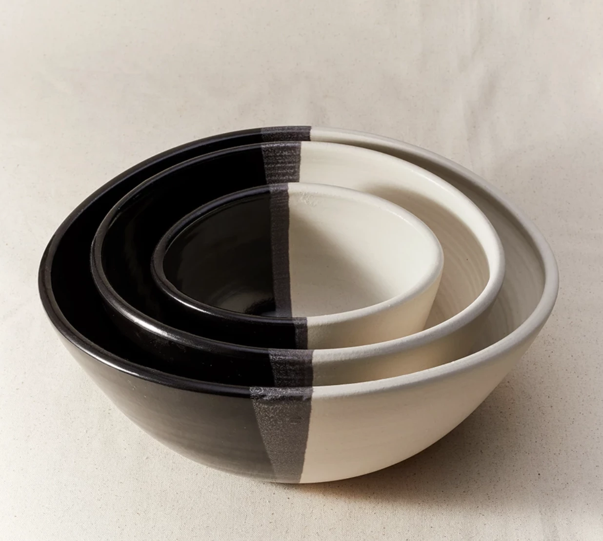 As a set of three, these handmade oval nesting bowls sit perfectly inside one another. Fill them with food for a party or leave them out as décor.