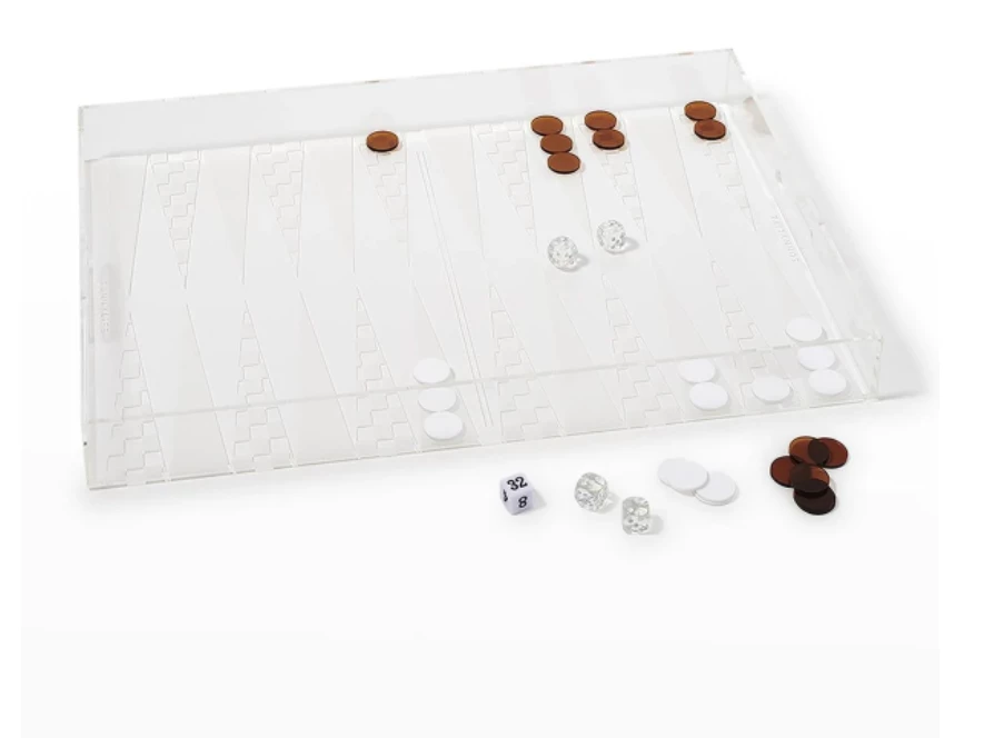 Designed with style in mind our acrylic backgammon tray is perfect for entertaining. Complete with acrylic playing pieces and dice this timeless set brings fun and function together for summer entertaining.