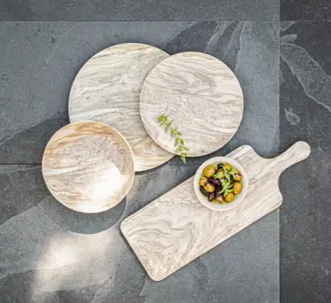 This faux wood Melamine keeps your table looking naturally chic. The set has additional serving pieces available and we love this set because it is durable and dishwasher safe. Ideal for both indoor and outdoor entertaining. Dinner Plate 10.5″ Salad Plate 8.5″ Bowl 6″