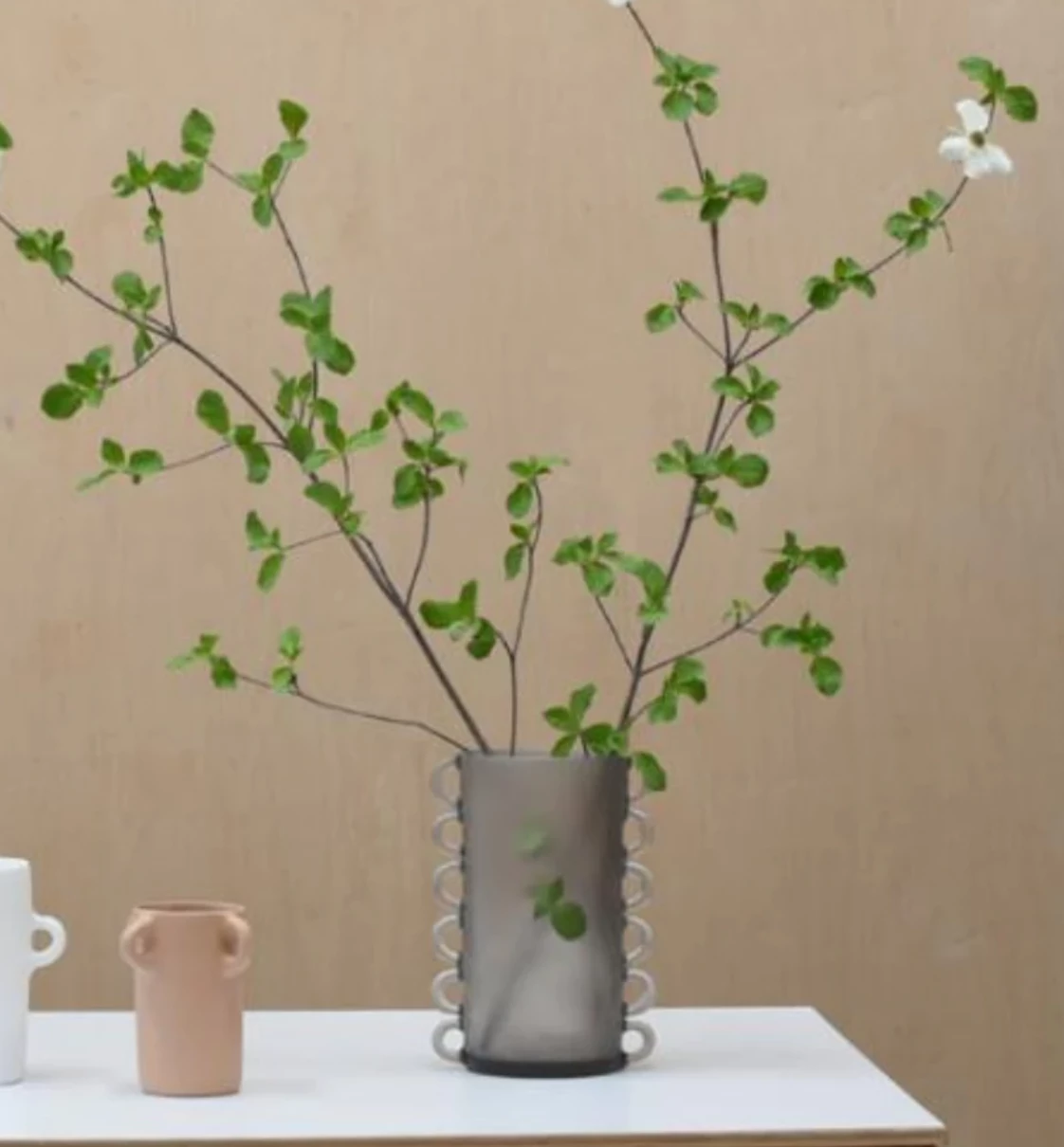 The handmade large Loopy Vase features loops reminiscent of handles or a strip of exaggerated lace along the outside. With an organic look, this large vase is perfect for delicate branches and making a statement.