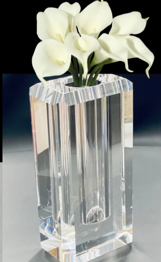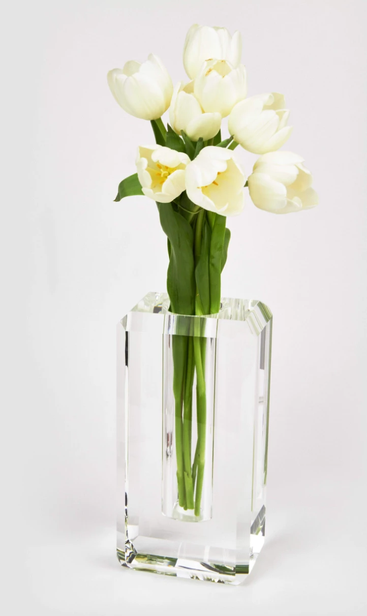 A Substantial striking vase with clean, modern lines that allow the emphasis to be on the blooms.