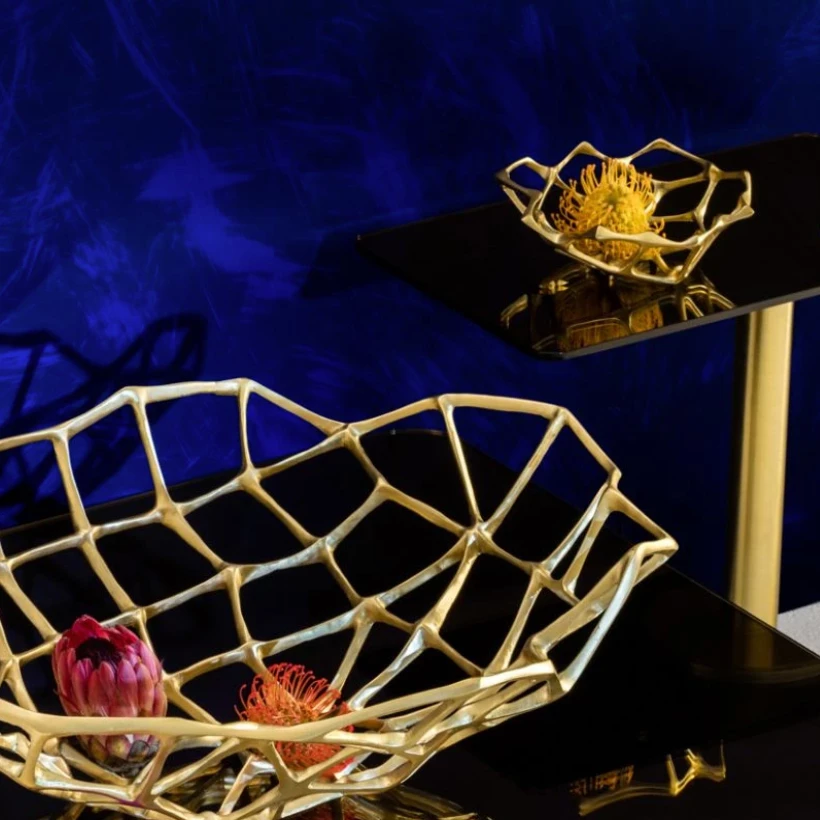 The Bone Bowl by Tom Dixon is part of a series of sculptural artifacts cast in solid brass with a matte finish bearing a bone-like quality. Simply Stunning on a table or console, its open structure works as an ideal fruit bowl or unusual table top piece.