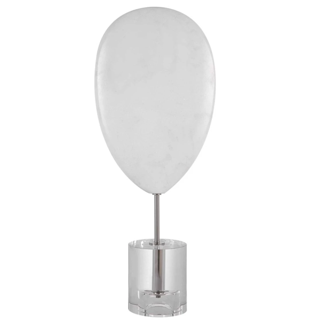 The Ellie Sculpture has a shape inspired by nature, and is made of a marble top piece that floats on a polished nickel rod and glass base.