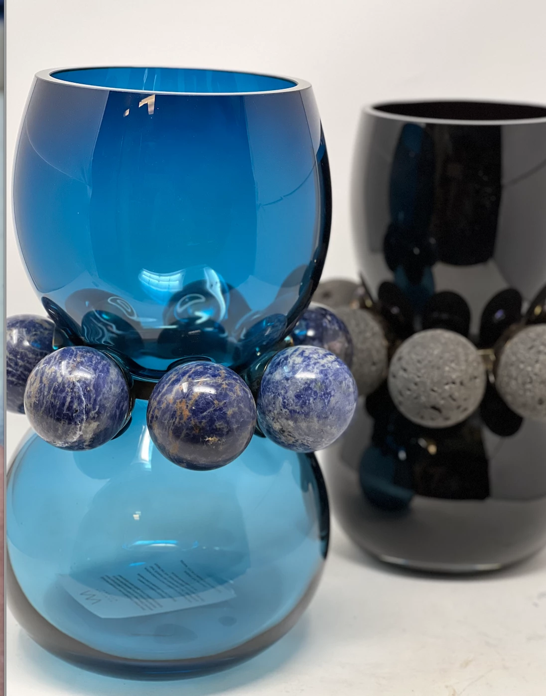 The Tiffany collection is a tribute to the famous jeweler and these unique vases showcase inset precious minerals, the seven balls have been carefully chosen to bring an elegant tone on tone effect to each piece.