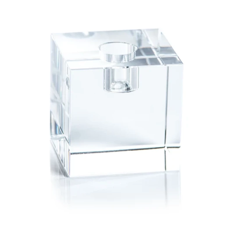A contemporary style with this simple but elegant taper candle holder set, featuring a sleek clear clean design we can t help but adore. The beauty and clarity of the glass can easily be incorporated into any setting. Fill with any taper candles to complete the look.