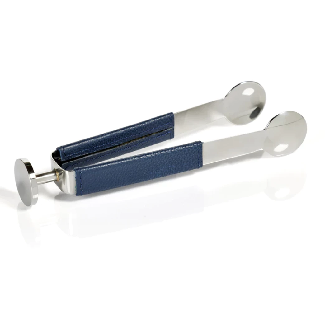 The Laguna Collection has a grouping of bar friendly items made of nickel and navy leather wrapped detailing. The Ice Tongs is the perfect accessory to match the beautiful Laguna Ice Bucket